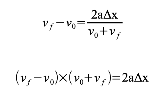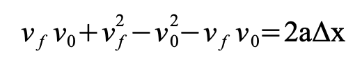 multiplying a with 2Δx, and moving v_0 + v_f on the opposite side of the equal sign