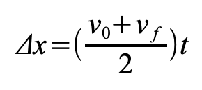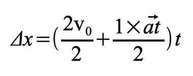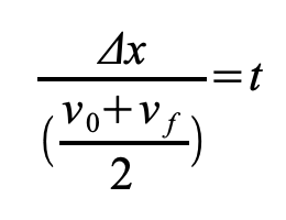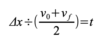 sign Δx will be divided by (v_0 + v_f)/2 which is mathematically viewed as,