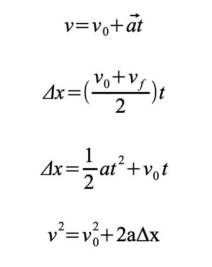 The Kinematic Equations are given below (Tangerine Education, 2018),