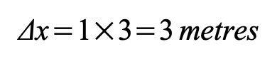 Taking our v_avg as 1 and multiplying it with 3 (that is time), we achieve the same result where Δx (displacement) = 3 metres.